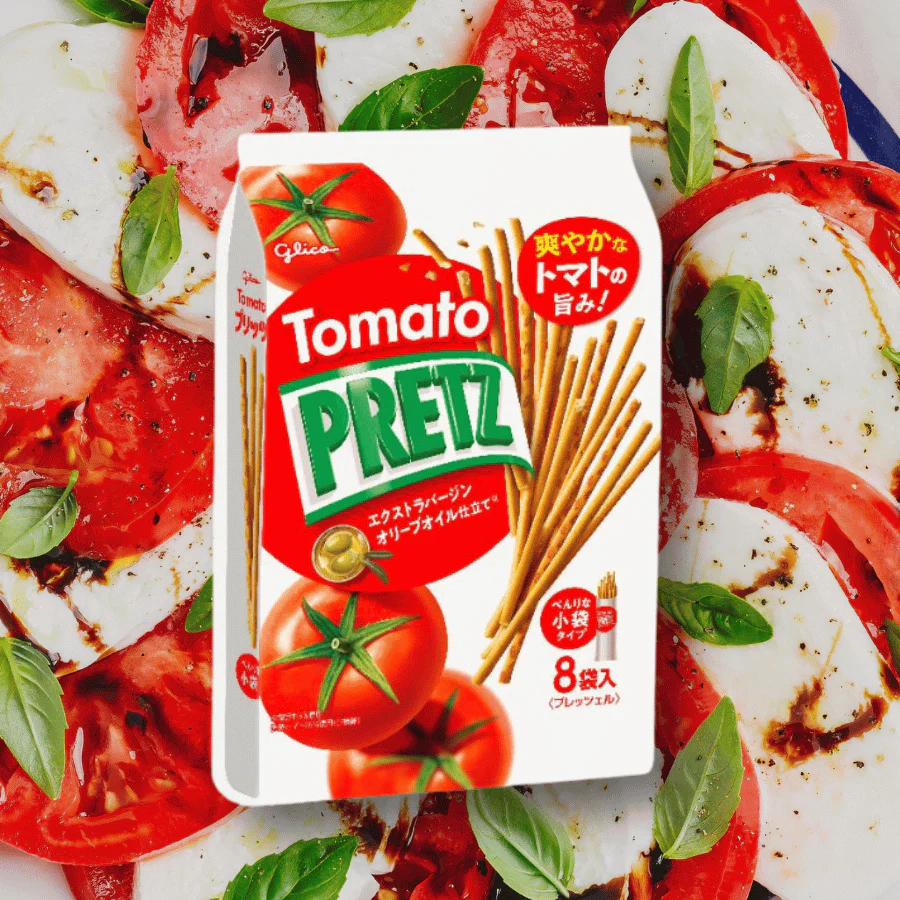 Discover PRETZ Tomato—a savory snack that packs a flavorful punch! These crunchy, olive oil-infused pretzel sticks are coated in a zesty tomato seasoning bursting with rich umami flavor.